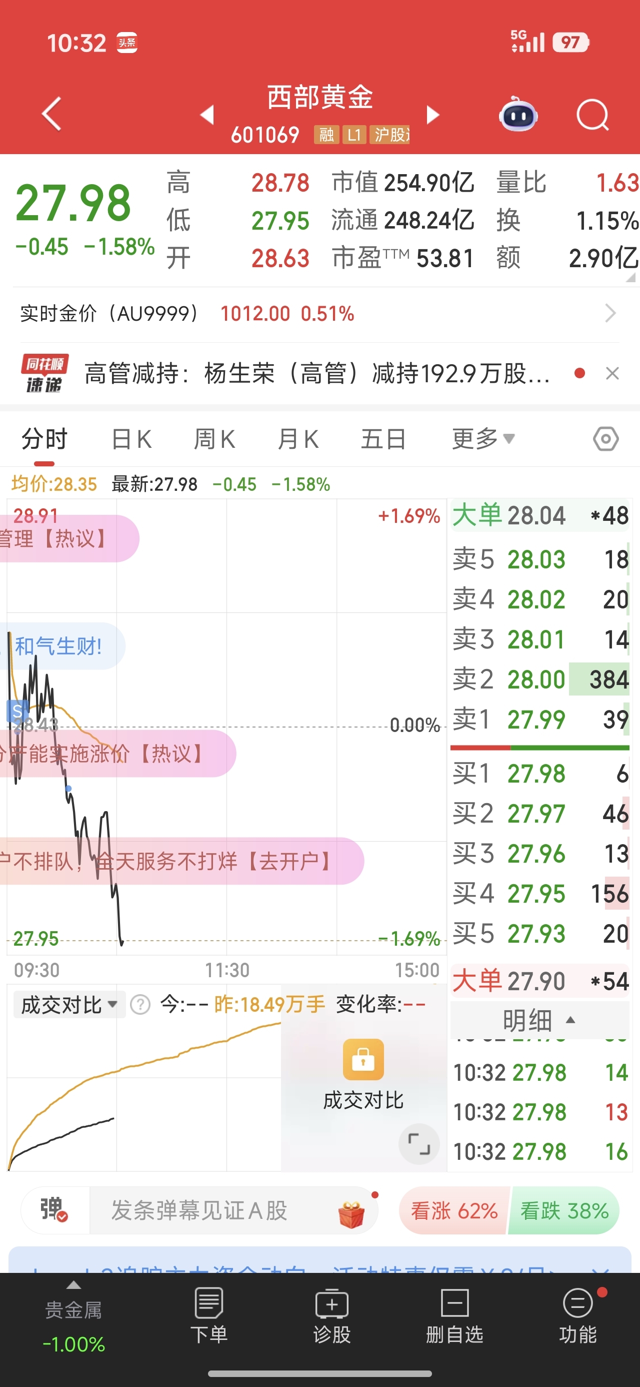 $西部黄金(SH601069)$ 早晓得你要干什么?先跑为敬不行呀!?