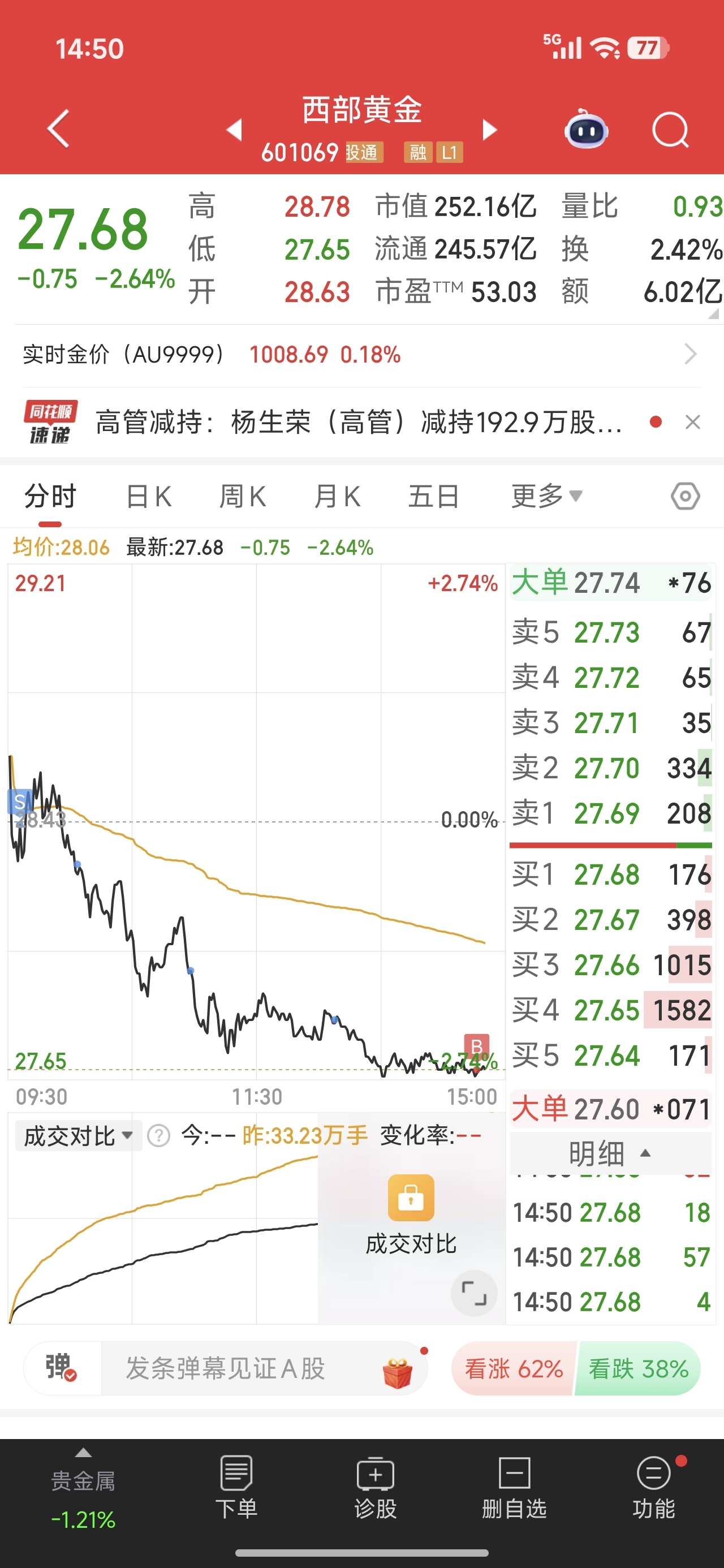 $西部黄金(SH601069)$ 尾盘又捡回来不香吗?