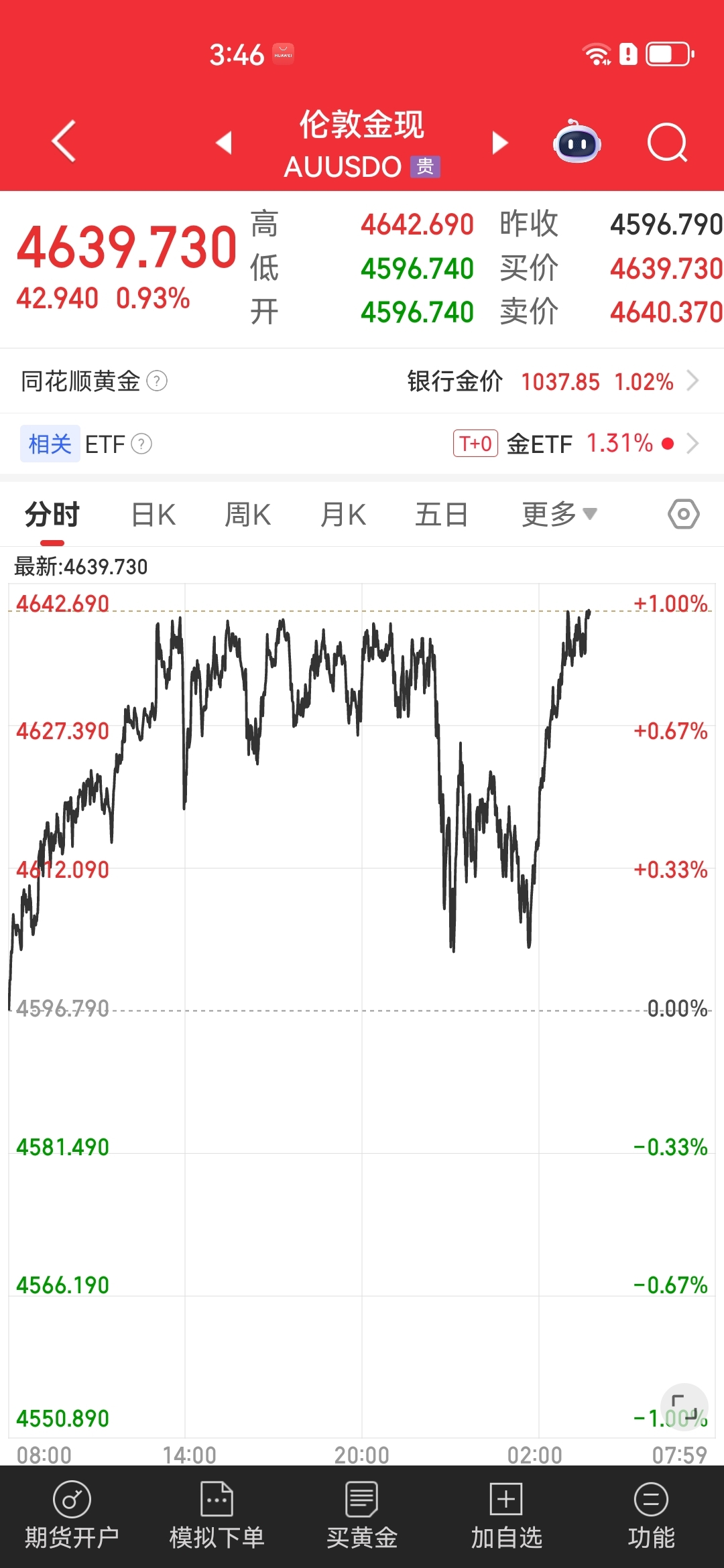 $西部黄金(SH601069)$ $华钰矿业(SH601020)$ 刚才现货黄金站上4640美元/盎司了,上完卫生间继续睡,梦里什么都有