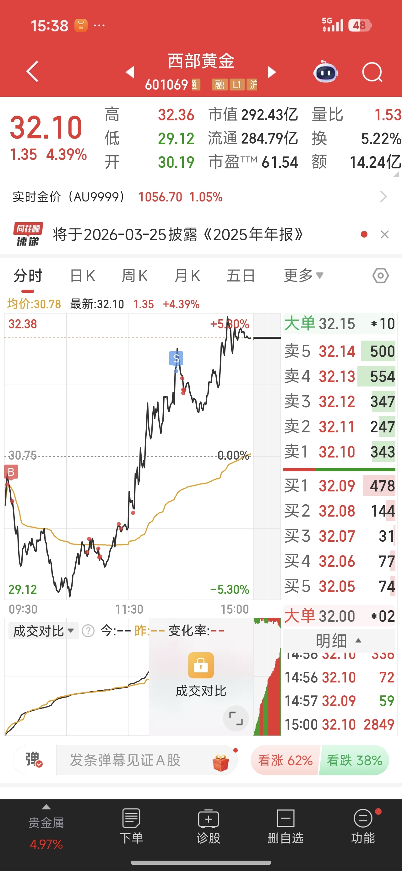被自己蠢哭了,今天梭哈西部黄金全来自白银有色,西部黄金发一个利好安慰我嘛!求你了