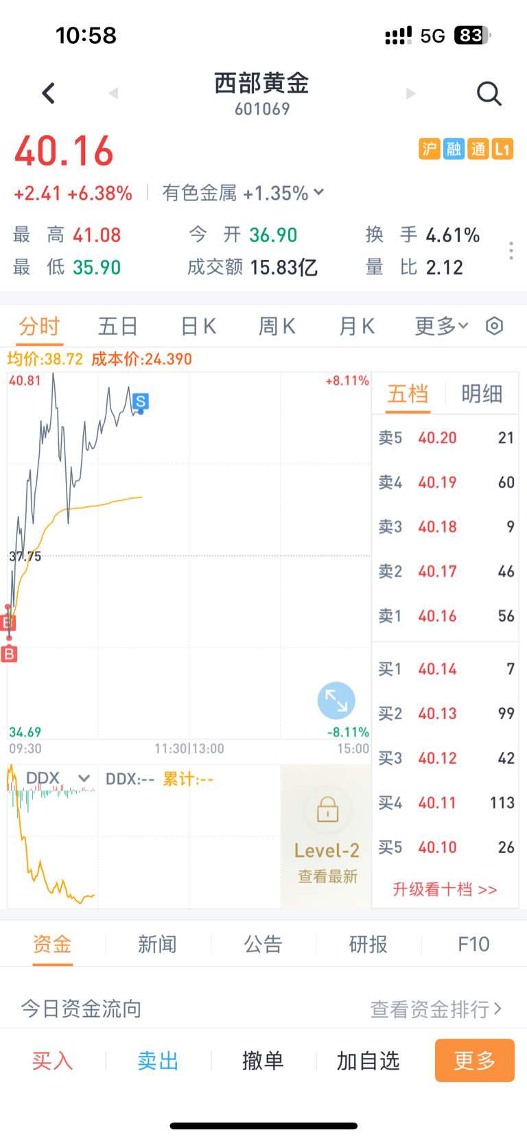 $西部黄金(SH601069)$ 今天任务完成