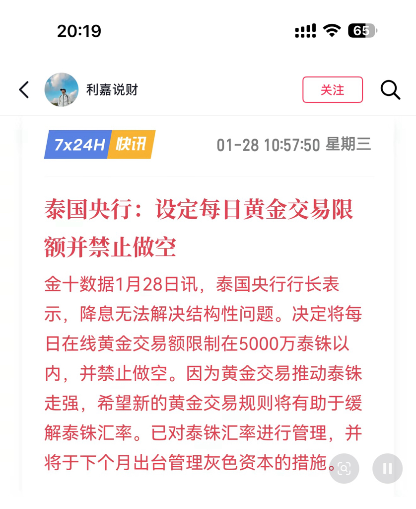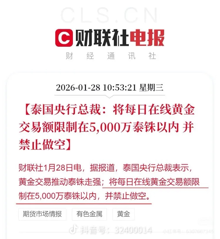 泰国中央银行居然要求禁止做空黄金!