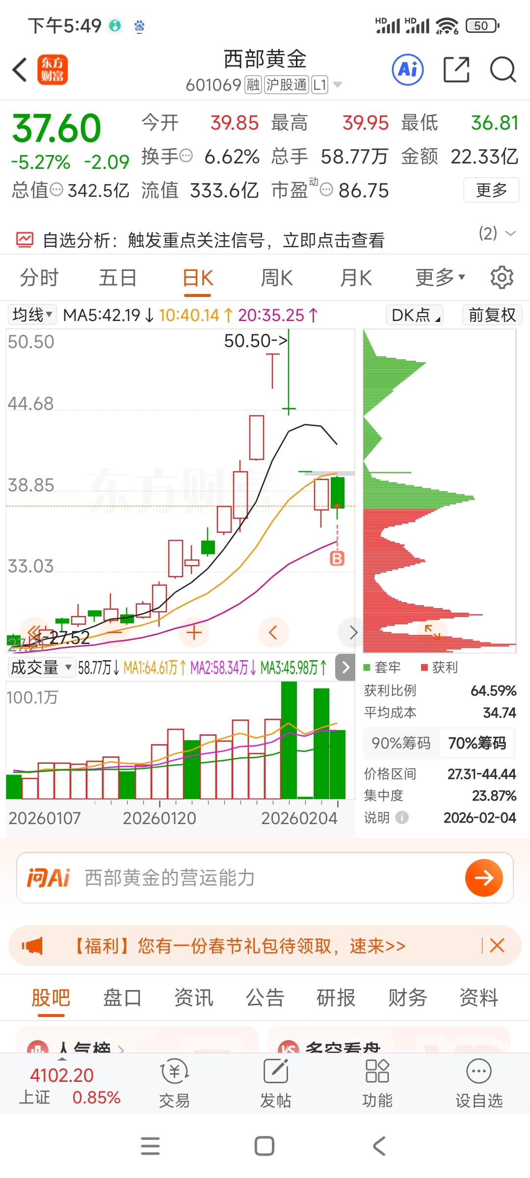 $西部黄金(SH601069)$ 还有没有连跌4天没走的。如果没有那明天开在0轴稳住。下午就要反抽了。如果还有那明天可能分时图上蹿下跳。再洗一天收在0到-2之间! 明天对我都是加仓预期的一天。因为我建仓了。
