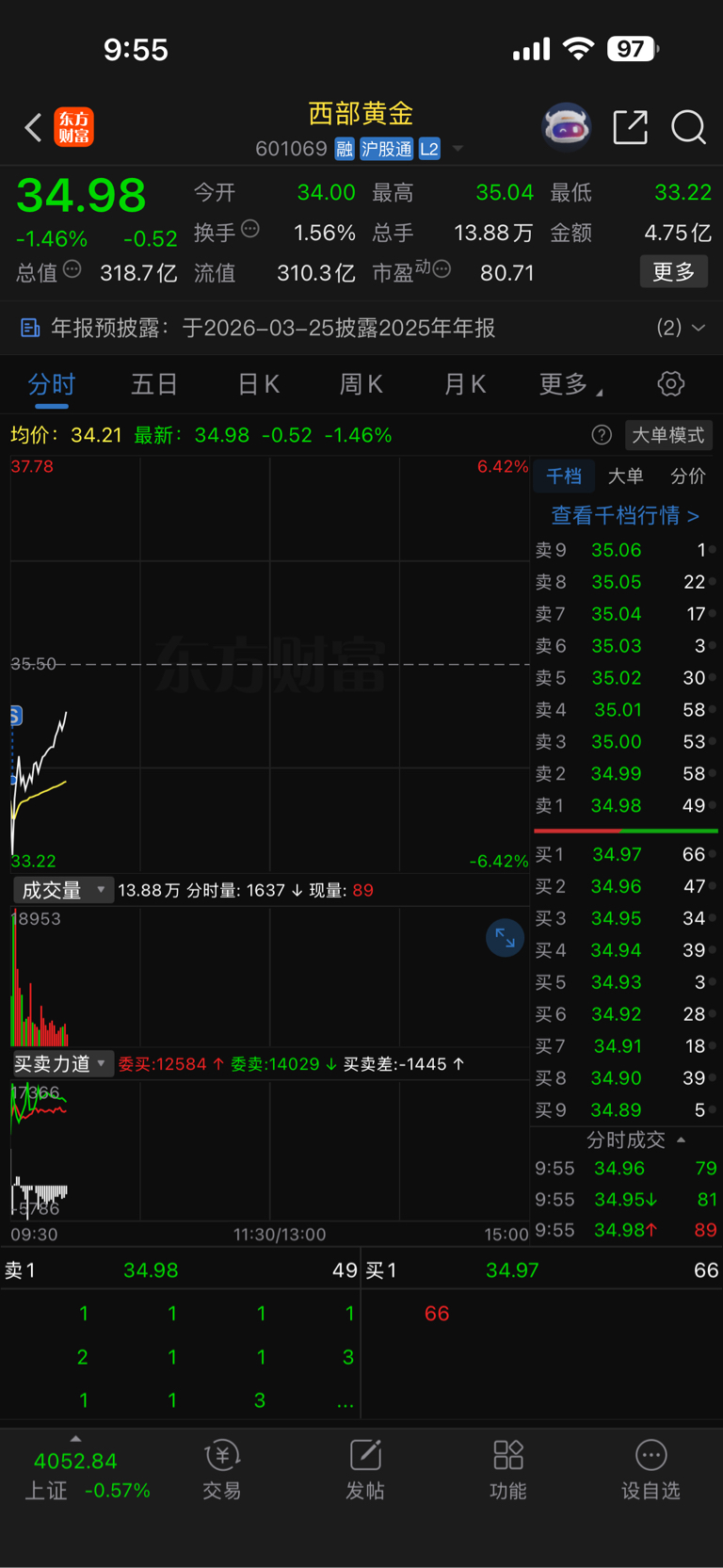 $西部黄金(SH601069)$ 真是气死人了.40 买的