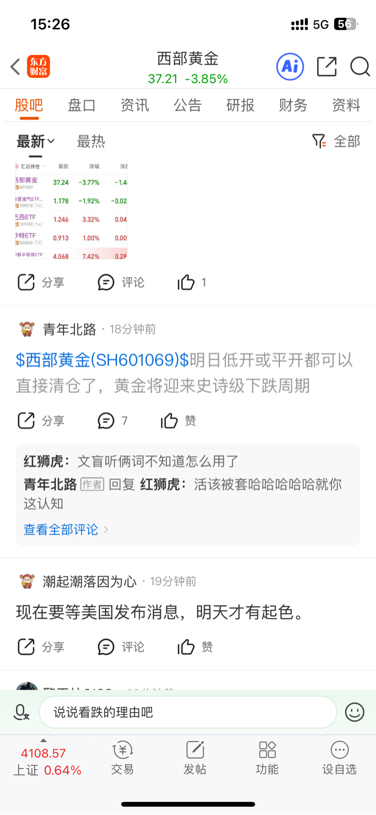 $西部黄金(SH601069)$ 昨天我就说过,这几个沙壁还不信非得杠
