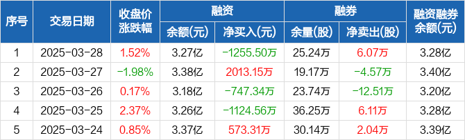 渝农商行:融资净偿还1255.5万元,融资余额3.27亿元(03-28)