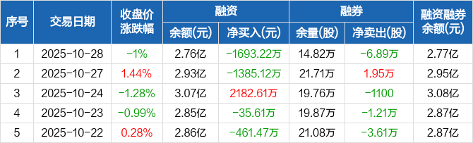 渝农商行:融资净偿还1693.22万元,融资余额2.76亿元(10-28)