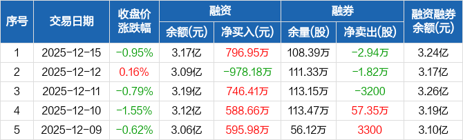 渝农商行:融资净买入796.95万元,融资余额3.17亿元(12-15)