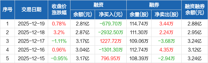渝农商行:融资净偿还679.7万元,融资余额2.81亿元(12-19)