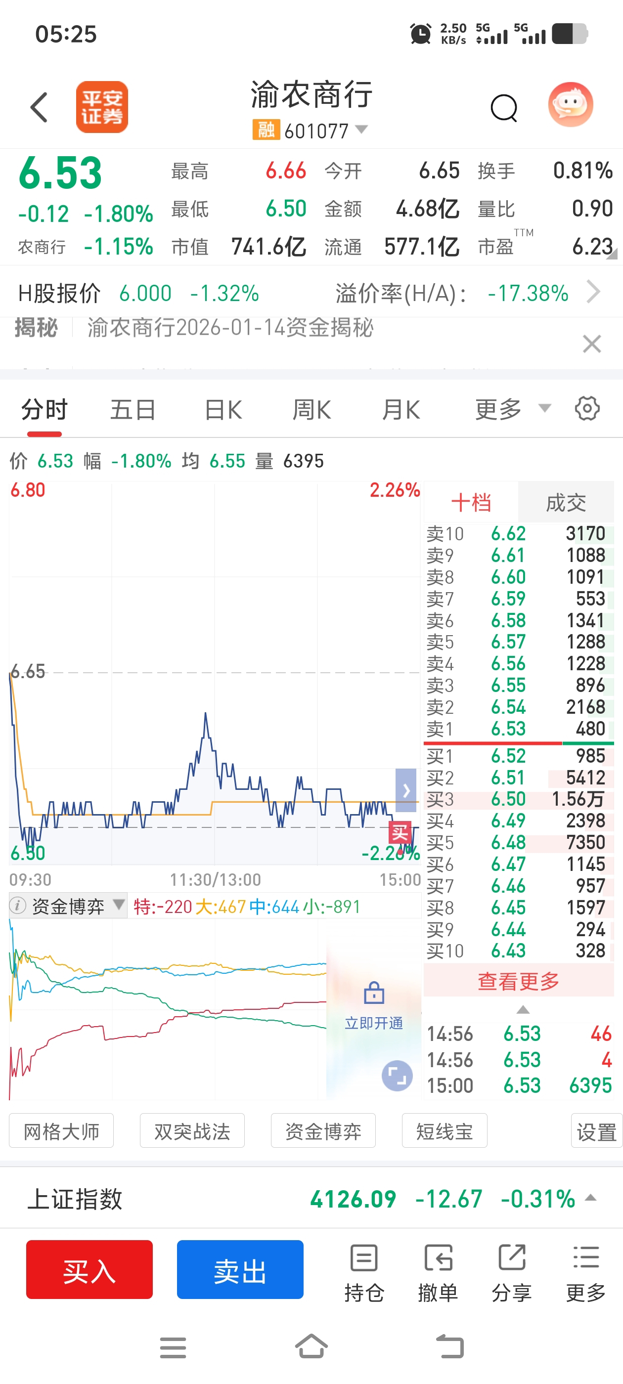 $渝农商行(SH601077)$ 前天卖了,昨天6.51接回,躲过大跌,好像捡漏了,看今天的表现了,应该有惊喜的!