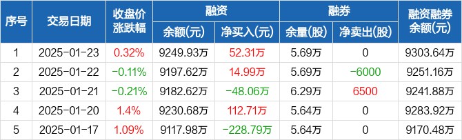 锦江航运:融资净买入52.31万元,融资余额9249.93万元(01-23)