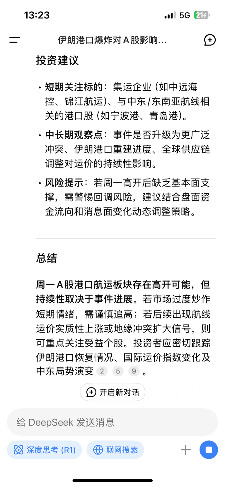 伊朗爆炸港口停摆,且是伊朗重要港口之一,若伊朗爆炸港口恢复缓慢,部分货物可能转向东南亚或中东其他港口中转,中国与东南亚航线密切相关的航运企业(如中远海控、锦江航运)可能承接增量需求。印巴冲突,贸易中止,印巴经济走廊停摆,同样对锦江航运承接贸易转口这一块业务来说,也是利好。