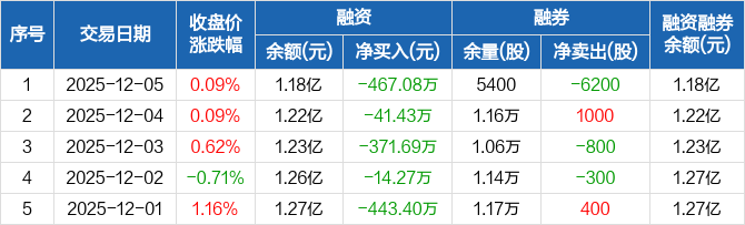 锦江航运:连续5日融资净偿还累计1337.87万元(12-05)