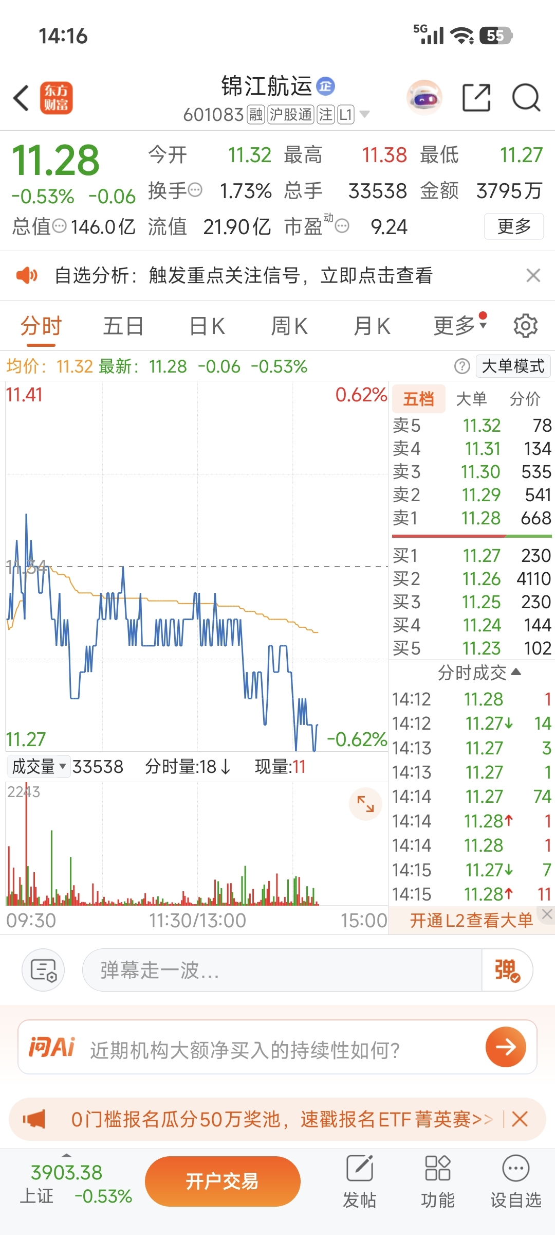 $锦江航运(SH601083)$ 11.26托4000来手有屁用!托单必跌!