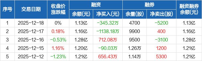锦江航运:融资净偿还345.32万元,融资余额1.13亿元(12-18)