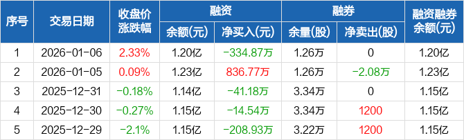 锦江航运:融资净偿还334.87万元,融资余额1.2亿元(01-06)