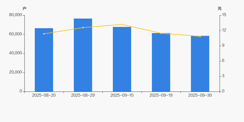 截至2025年9月30日,公司最新总股本为6.66亿股,且均为流通股。户均持有流通股数量由上期的1.09万股上升至1.14万股,户均流通市值12.37万元。