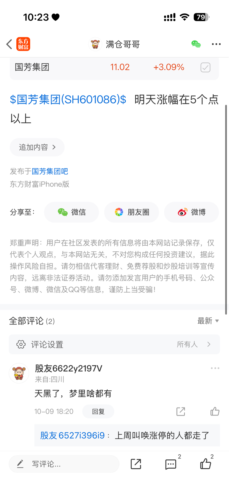 温馨提示: 1.根据《证券法》规定,禁止编造、传播虚假信息或者误导性信息,扰乱证券市场;2.用户在本社区发表的所有资料、言论等仅代表个人观点,与本网站立场无关,不对您构成任何投资建议。用户应基于自己的独立判断,自行决定证券投资并承担相应风险。《东方财富社区管理规定》