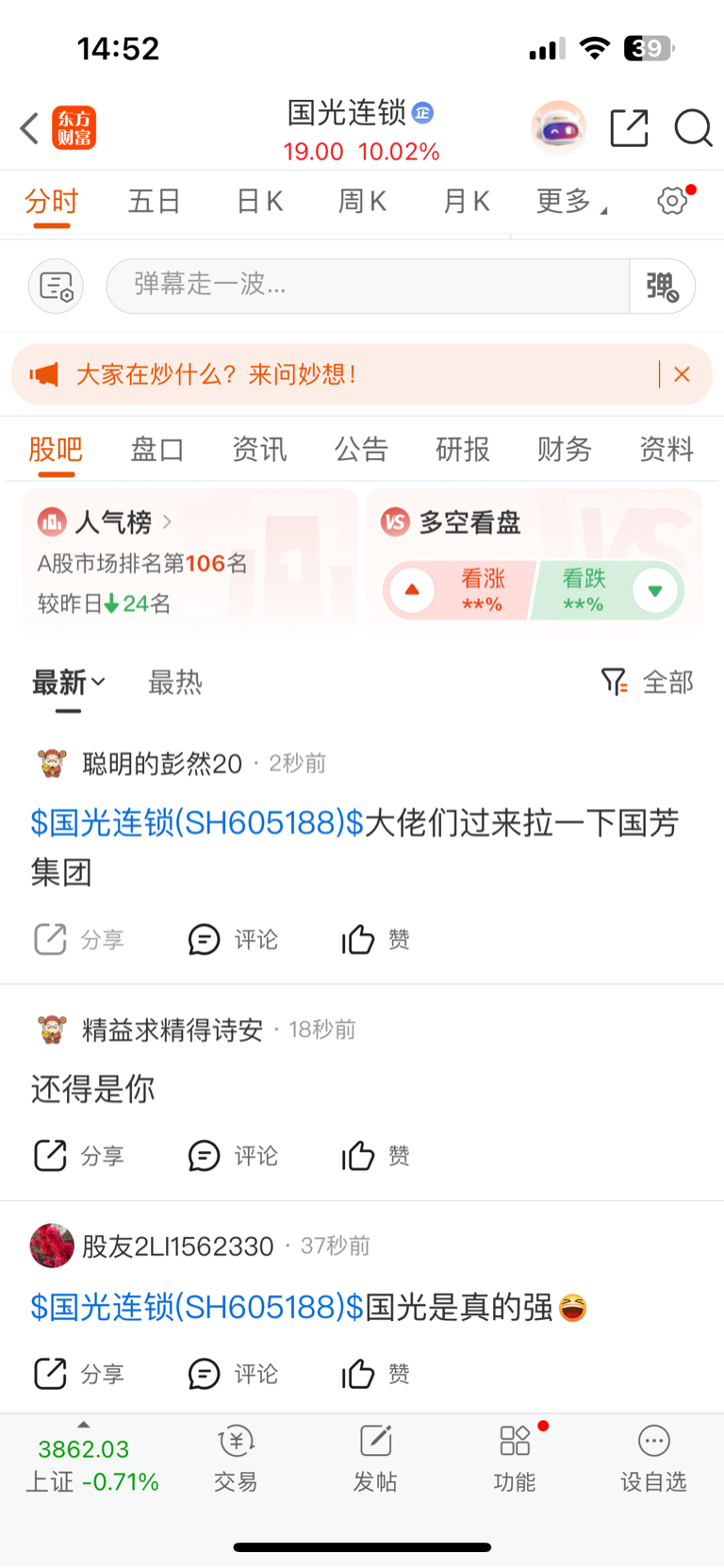 温馨提示: 1.根据《证券法》规定,禁止编造、传播虚假信息或者误导性信息,扰乱证券市场;2.用户在本社区发表的所有资料、言论等仅代表个人观点,与本网站立场无关,不对您构成任何投资建议。用户应基于自己的独立判断,自行决定证券投资并承担相应风险。《东方财富社区管理规定》