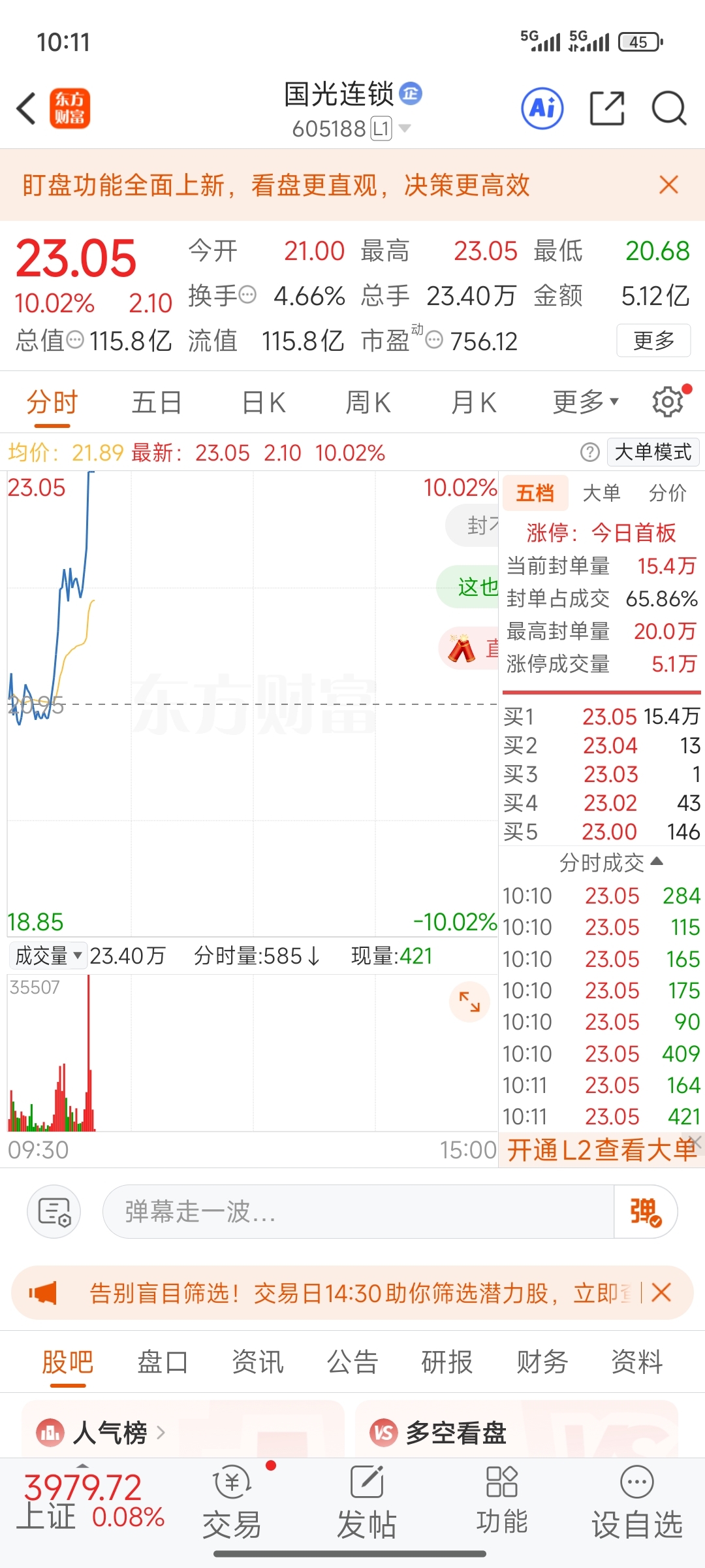 $国芳集团(SH601086)$ 还是不够强啊
