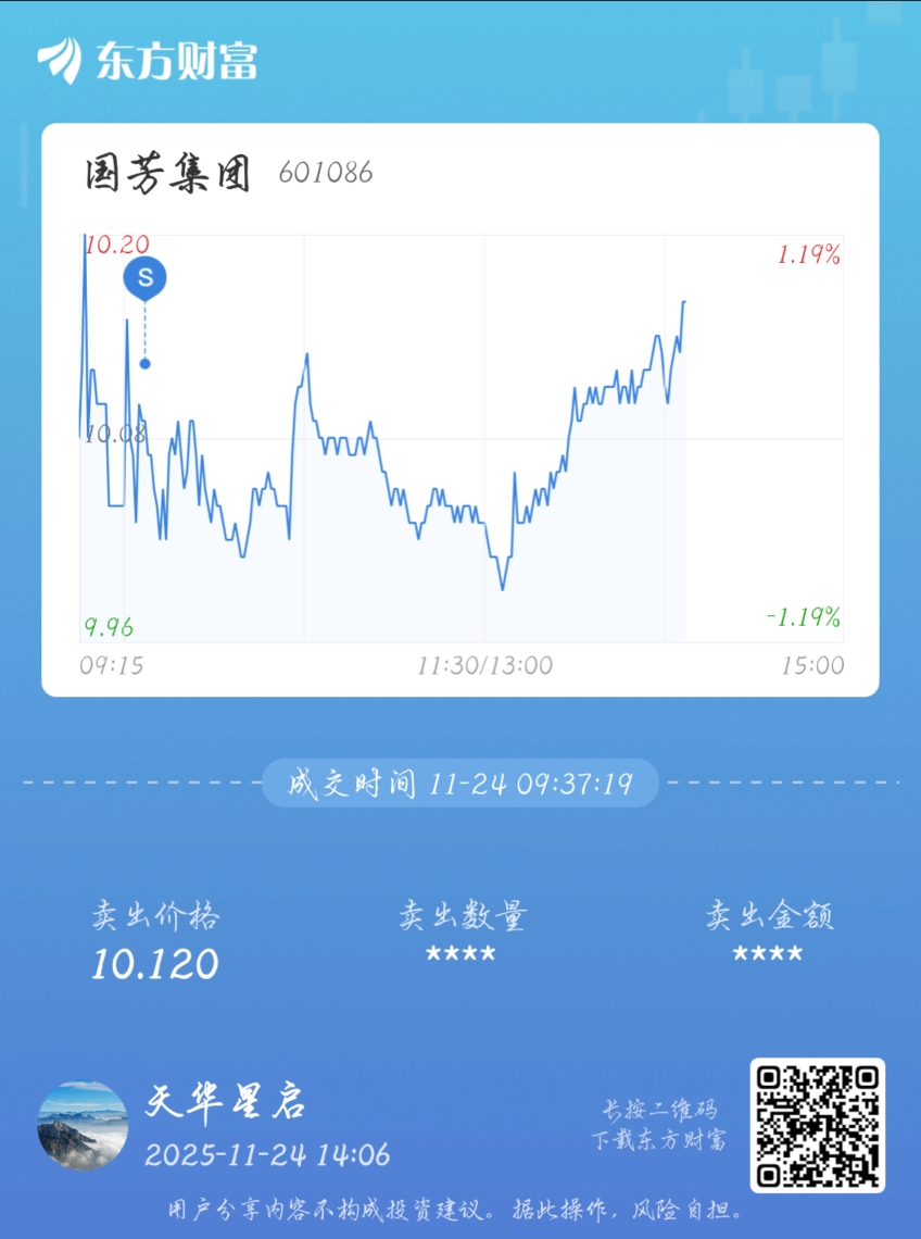$国芳集团(SH601086)$ 我好像有一点卖飞了