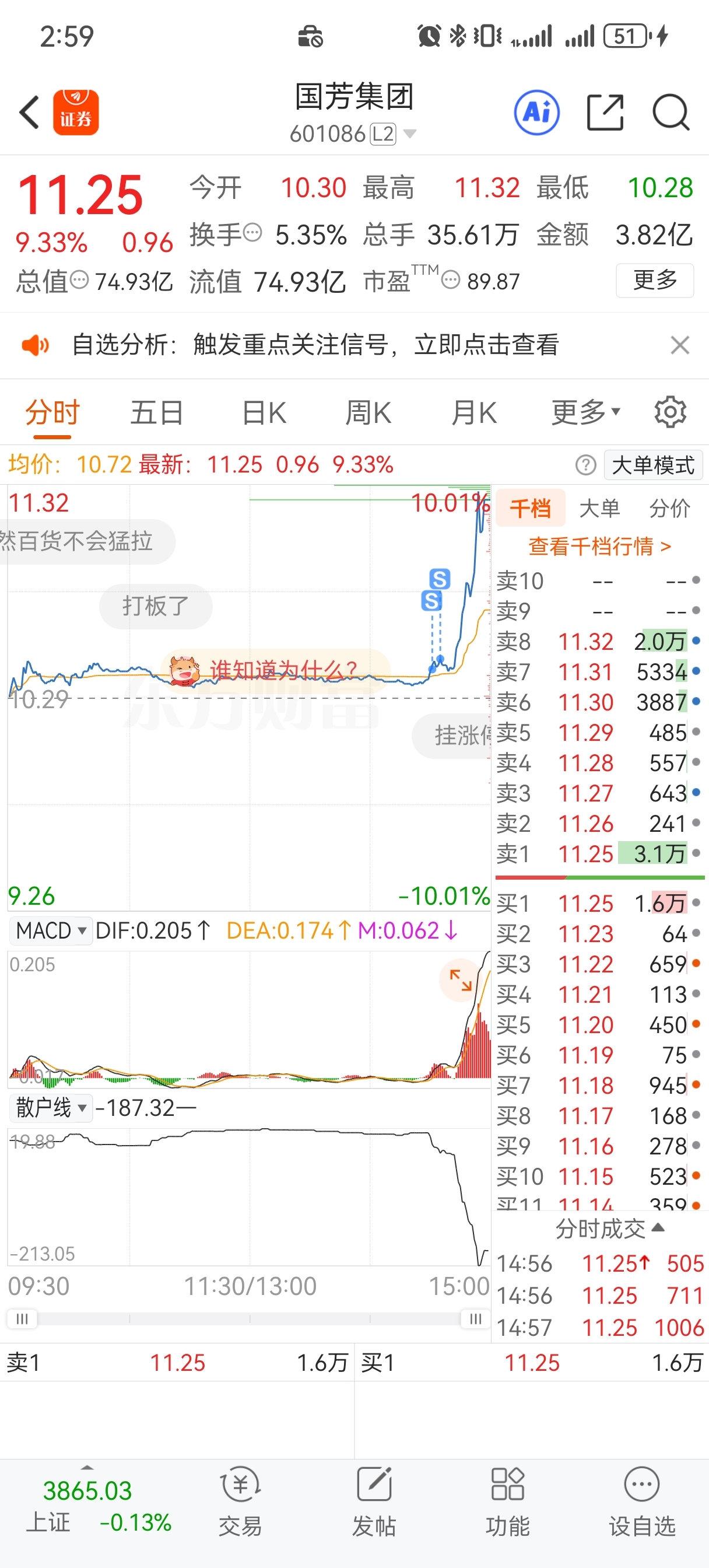 $国芳集团(SH601086)$ 我一卖就拉?