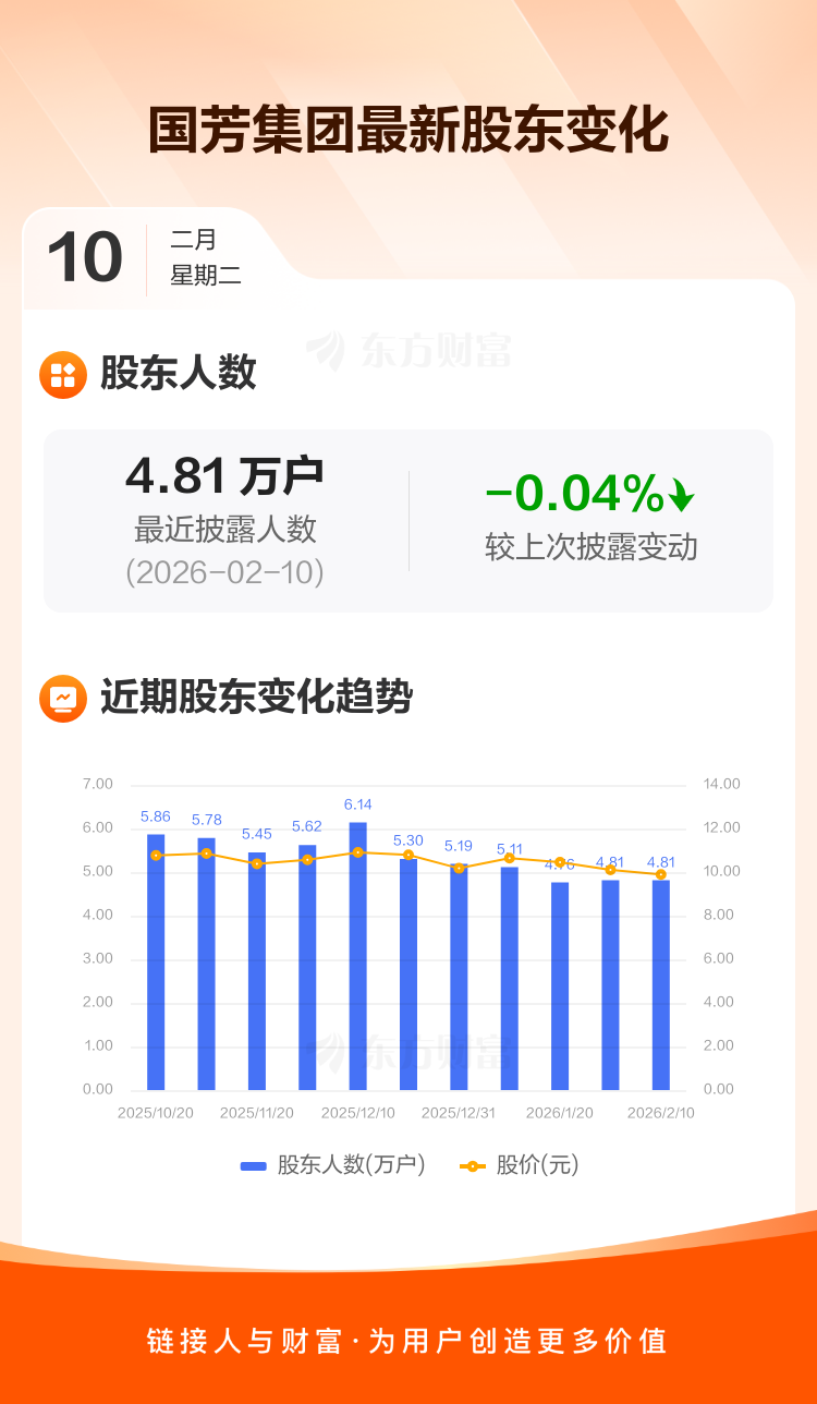 国芳集团:截至2月10日最新股东户数4.81万户,较上期减少0.04%