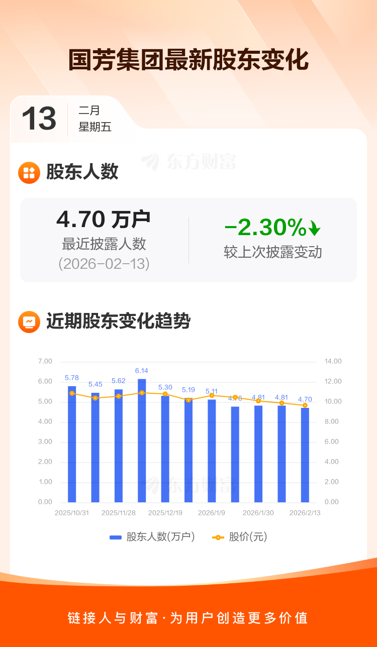 国芳集团:截至2月13日最新股东户数4.70万户,较上期减少2.30%