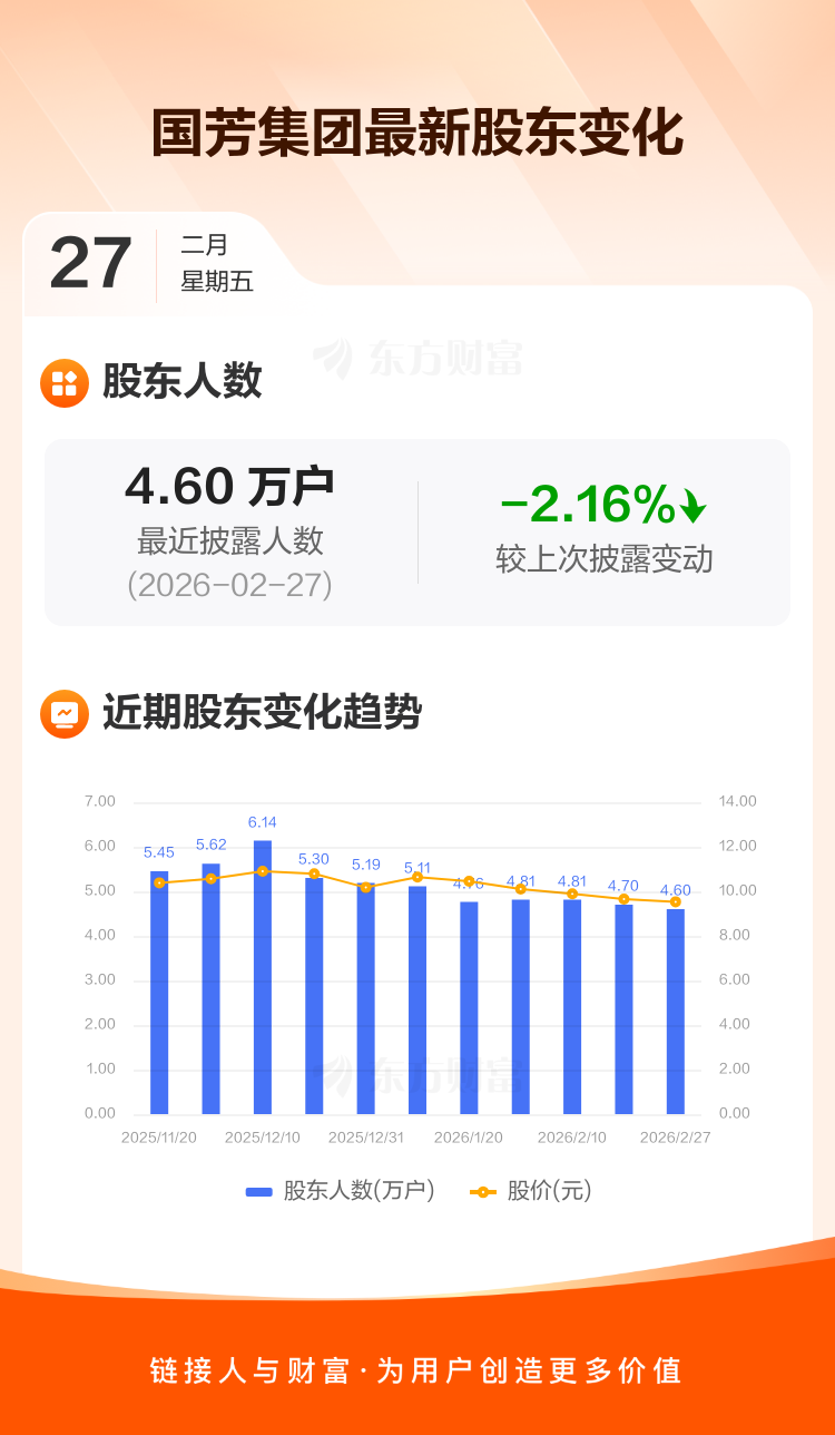 国芳集团:截至2月27日最新股东户数4.60万户,较上期减少2.16%