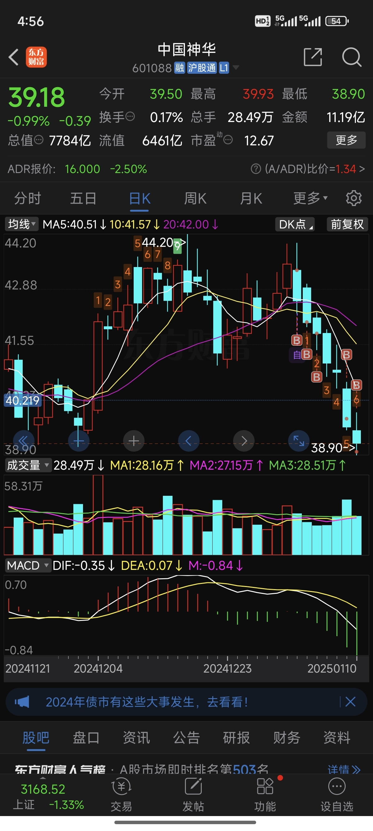 $中国神华(SH601088)$ 对不起,被我买崩了