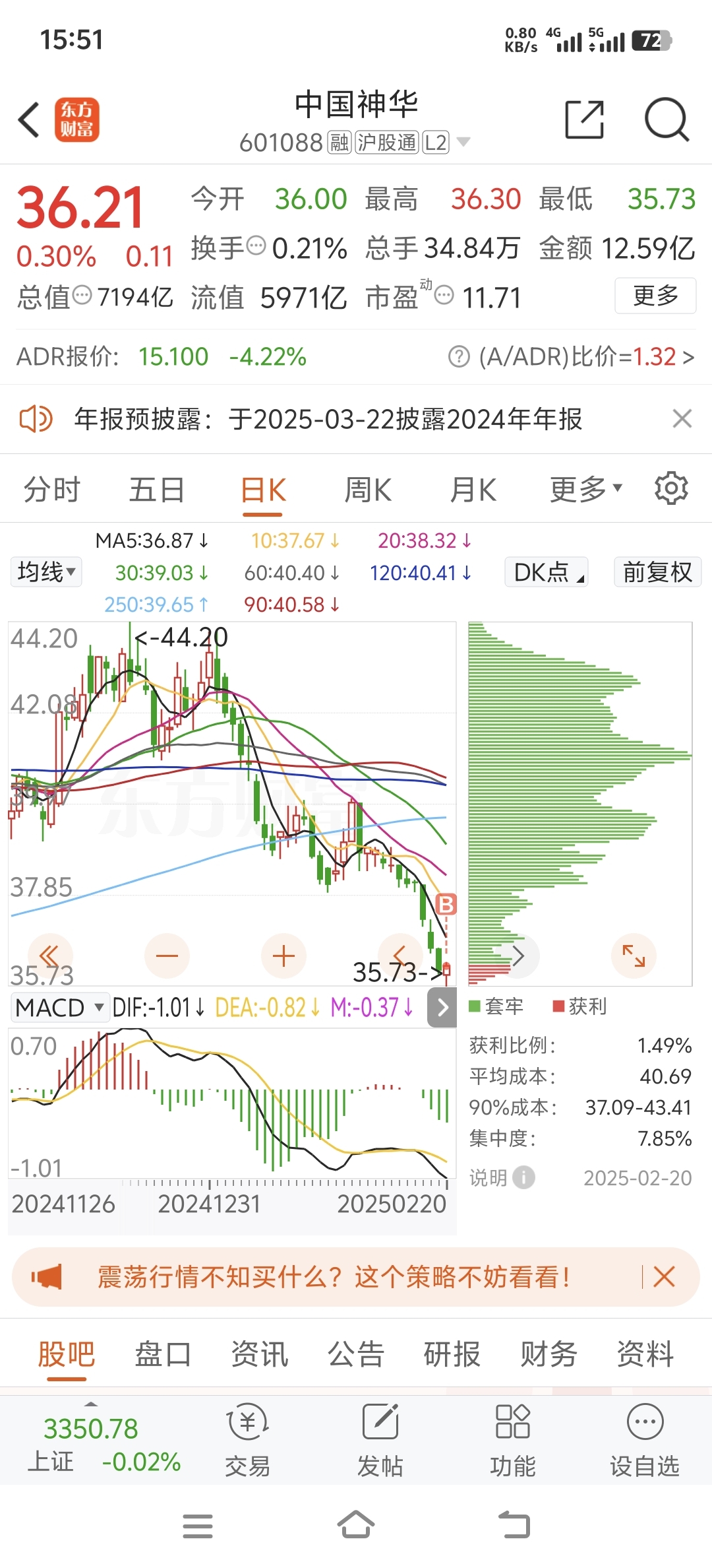 $中国神华(SH601088)$ 减仓科技股,别人不敢抄的底我来抄,先入两层仓