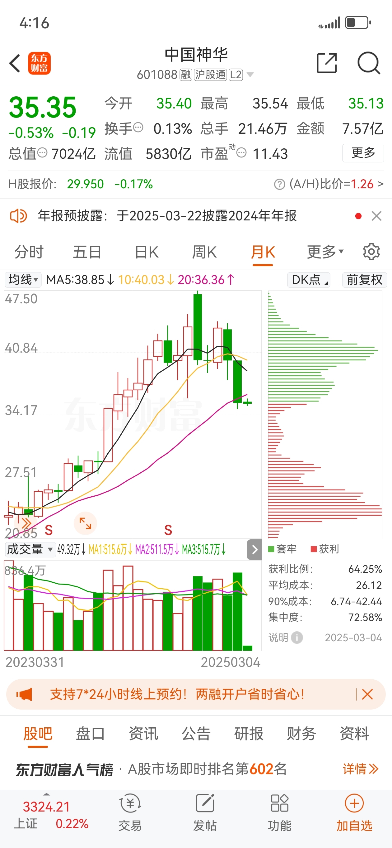 $中国神华(SH601088)$ 40 块 以上的,如果不是做T 高手,算上你的分红,就算他不出幺蛾子,不搞事情,没有大的利空 。 3 年内难回本
