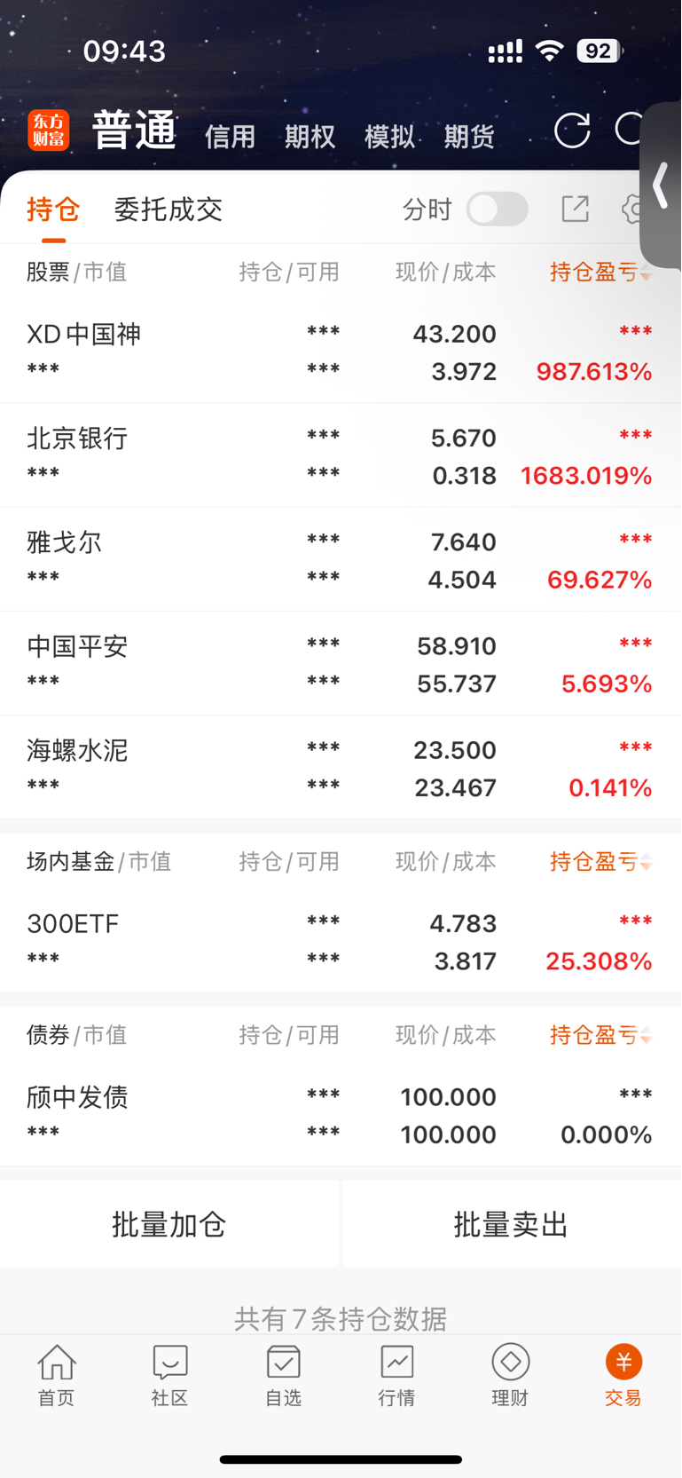 这就是长期持股的好处,再有两年不到,神华的成本也该归零了。