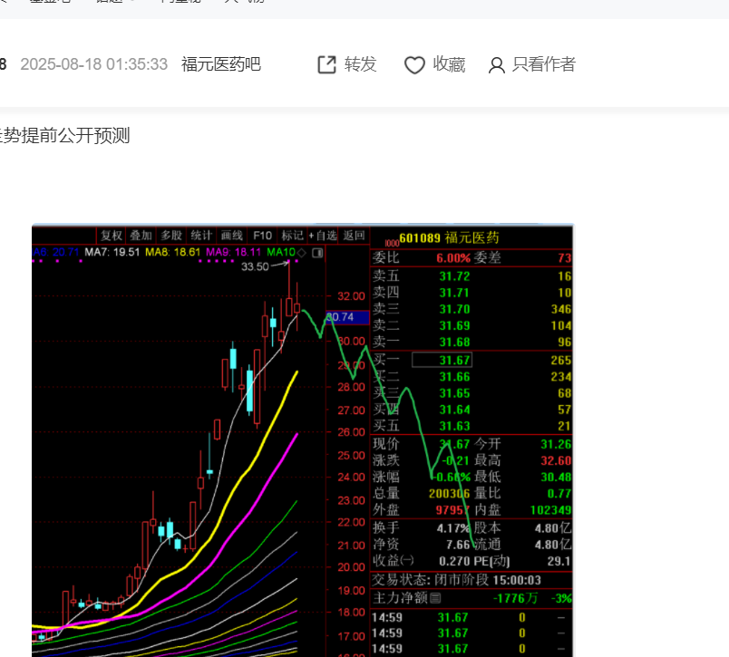 福元医药在两个月前就见了大顶了,走势在两个月前股王就精确提前预测到了