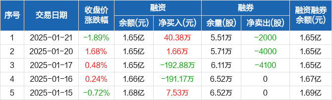 宏盛华源:融资净买入40.38万元,融资余额1.65亿元(01-21)