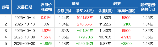 宏盛华源:融资净买入1051.53万元,融资余额1.44亿元(10-14)