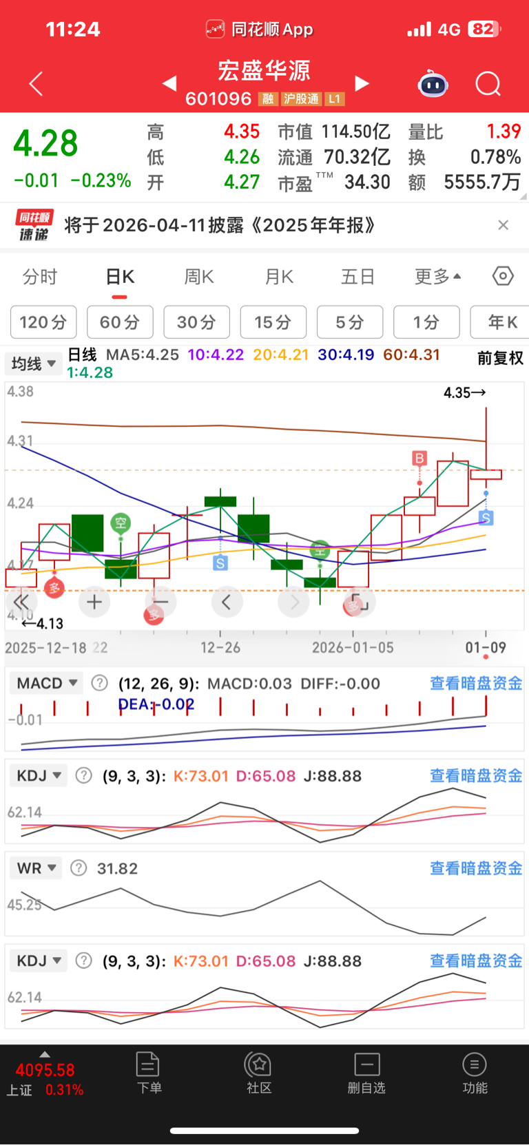 $宏盛华源(SH601096)$ 赚一毛钱 就要走人下来4.15再买吧
