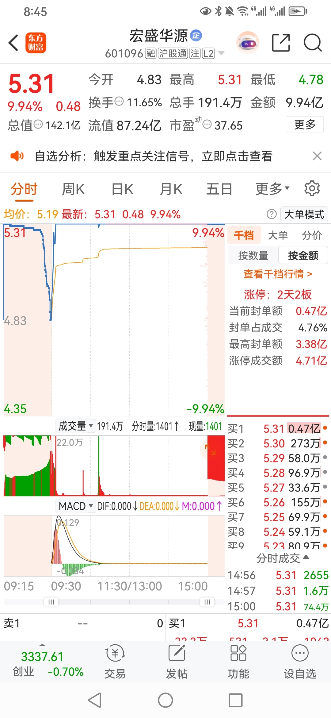 军哥,买进二板1000万涨停板