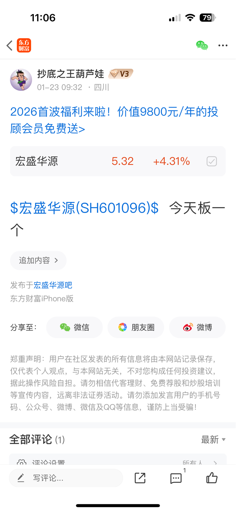 $宏盛华源(SH601096)$ 早上开盘通知的大家,有需要的可以关注一下我。每天交流炒股心得。有看好的票都会通知大家,买卖都会发帖。