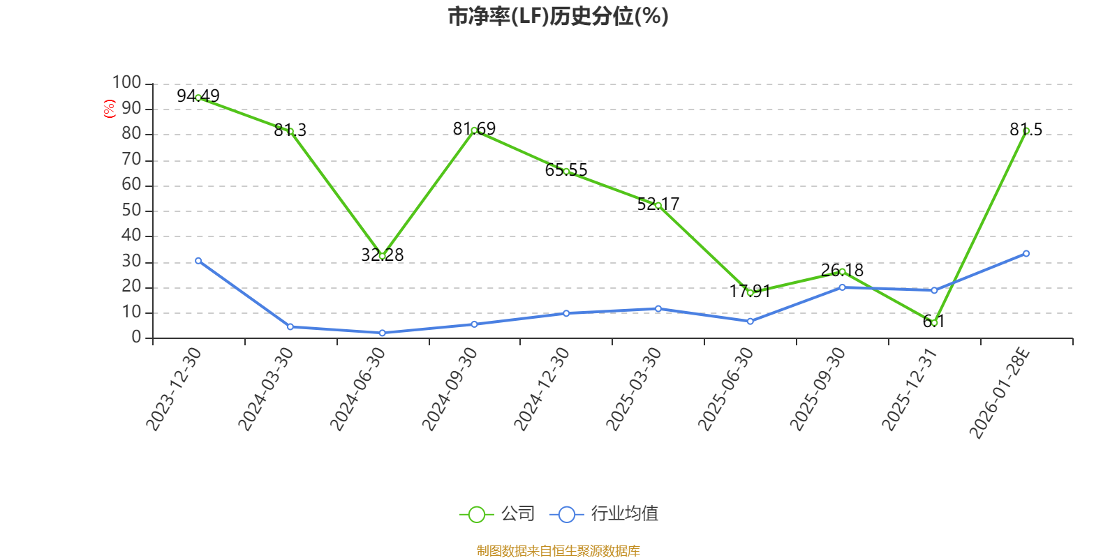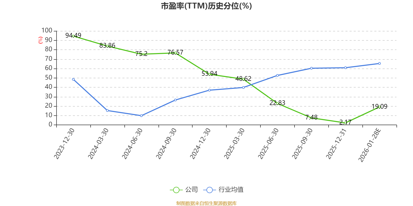 市盈率、市净率为负时,不显示当期分位数,会导致折线图中断。