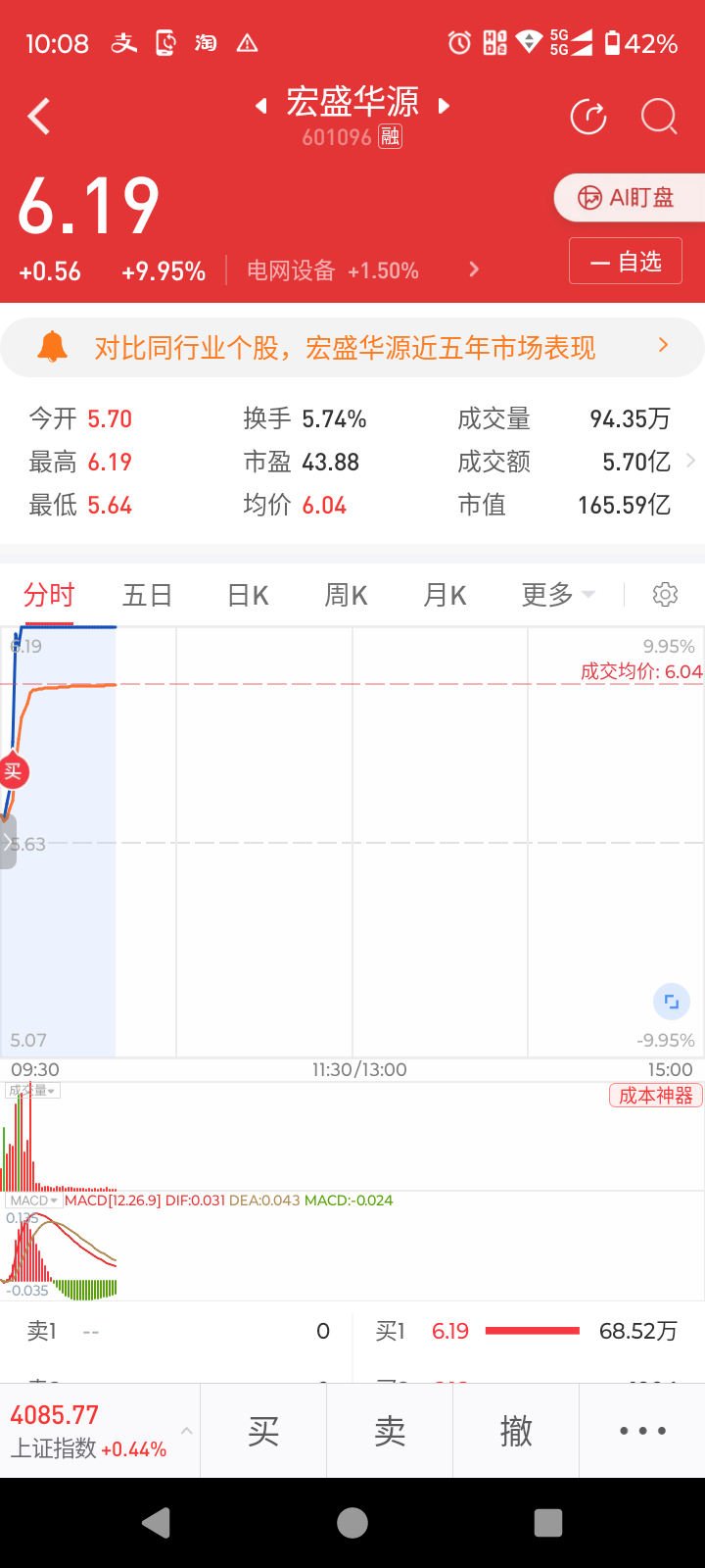 早盘5.86吃进