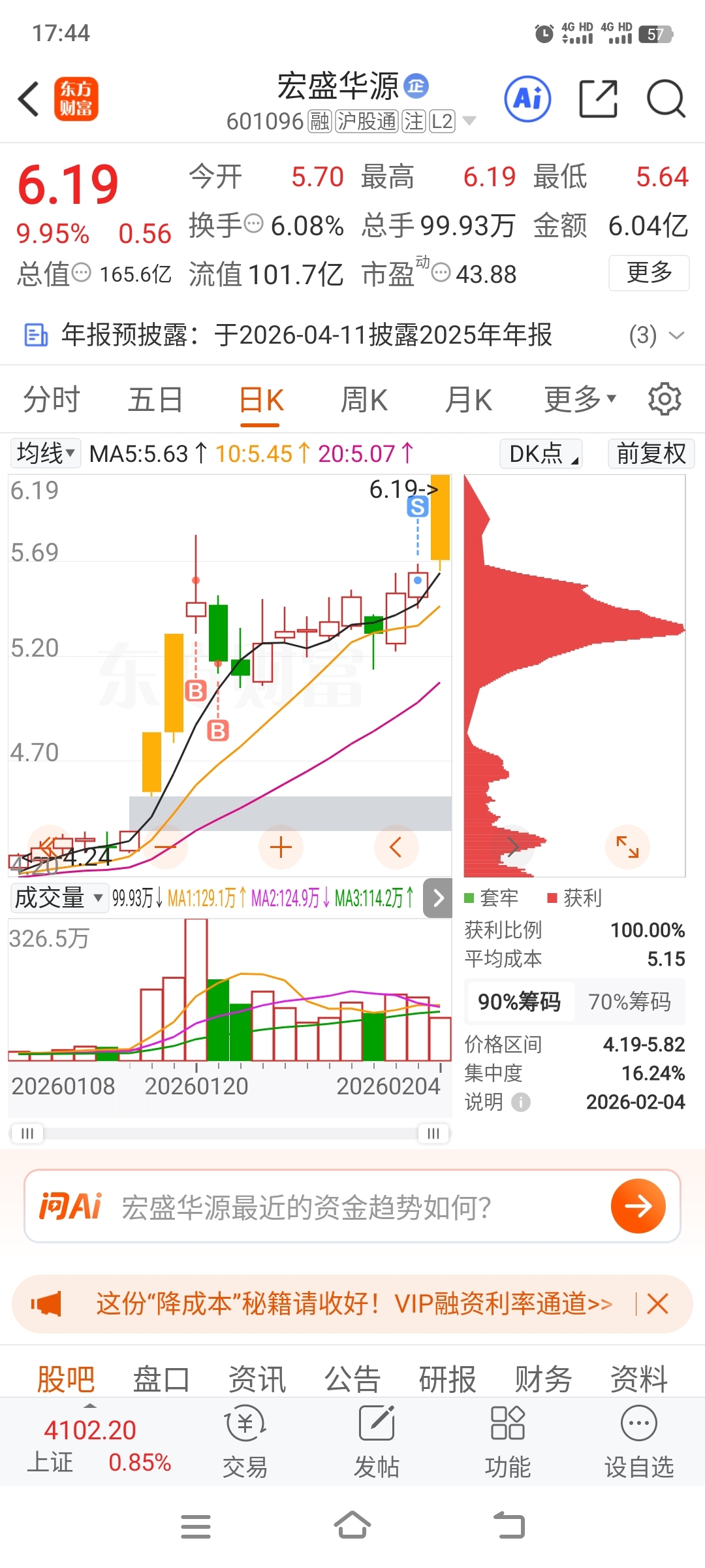 看我操作#炒股日记# 我牛不牛$宏盛华源(SH601096)$