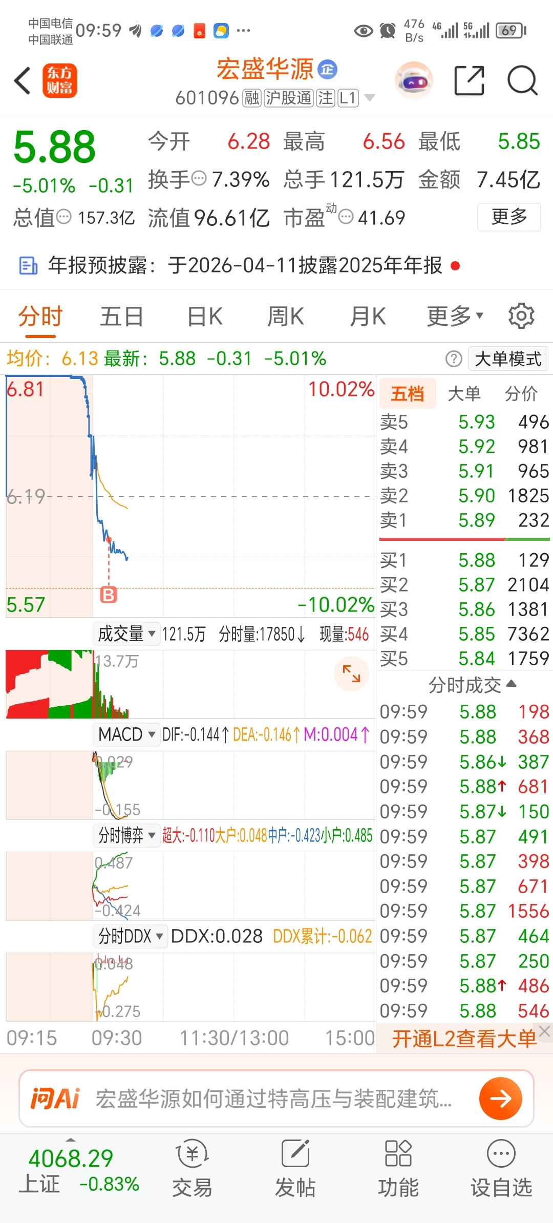 $宏盛华源(SH601096)$ 不好意思啊兄弟姐妹们,是我把这个股票买跌了