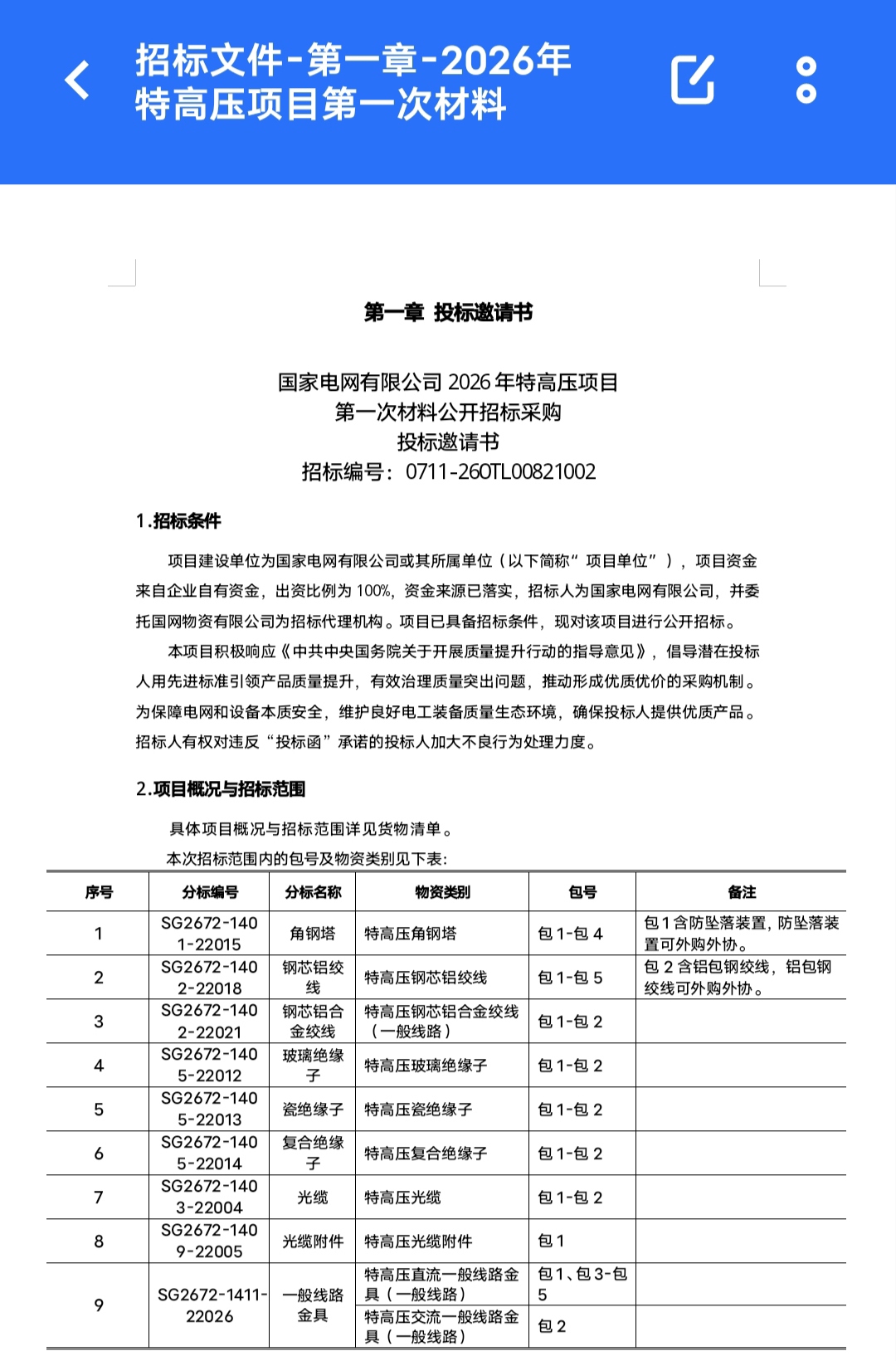 $宏盛华源(SH601096)$ 国网26年第一期工程招标书中,把角钢塔项目放在第一位。