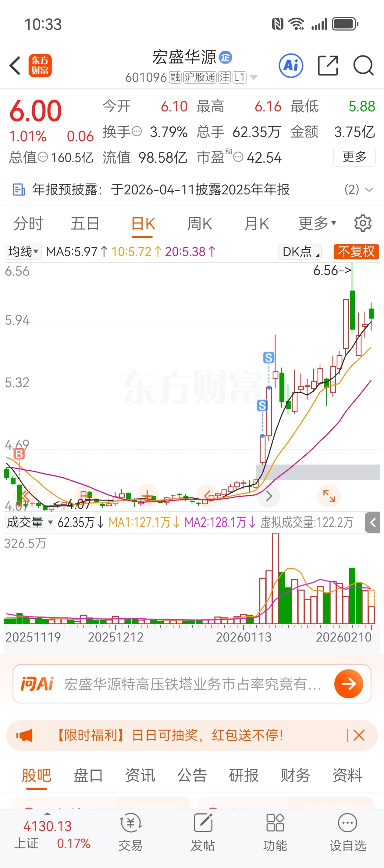 $宏盛华源(SH601096)$ 必须打下来