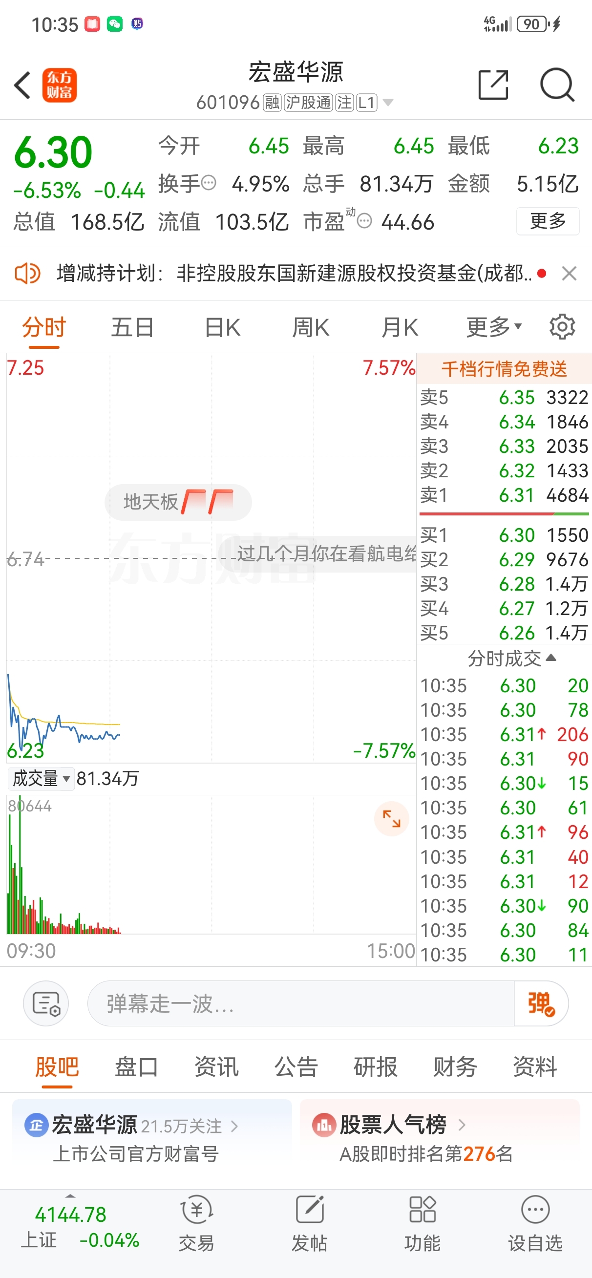 $宏盛华源(SH601096)$ 托单都是1万手,压单都是1千手,反弹不难,就看几点启动了。