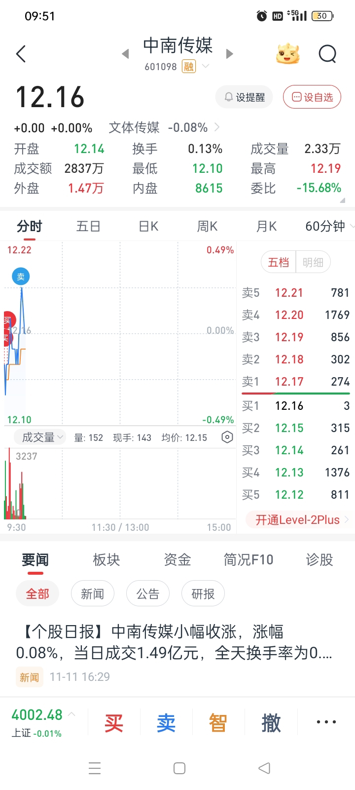 $中南传媒(SH601098)$ 不T不行,5分到手