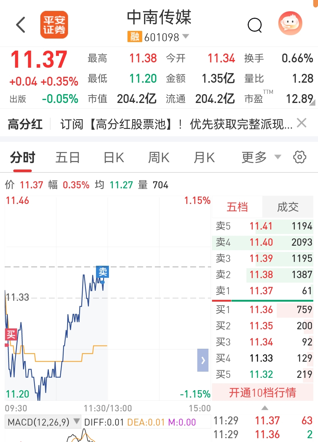 $中南传媒(SH601098)$ 谢谢主力,衷心感谢,今天冲上11.40元概率很大,但我不贪主力,大家一起赚才是好生意。