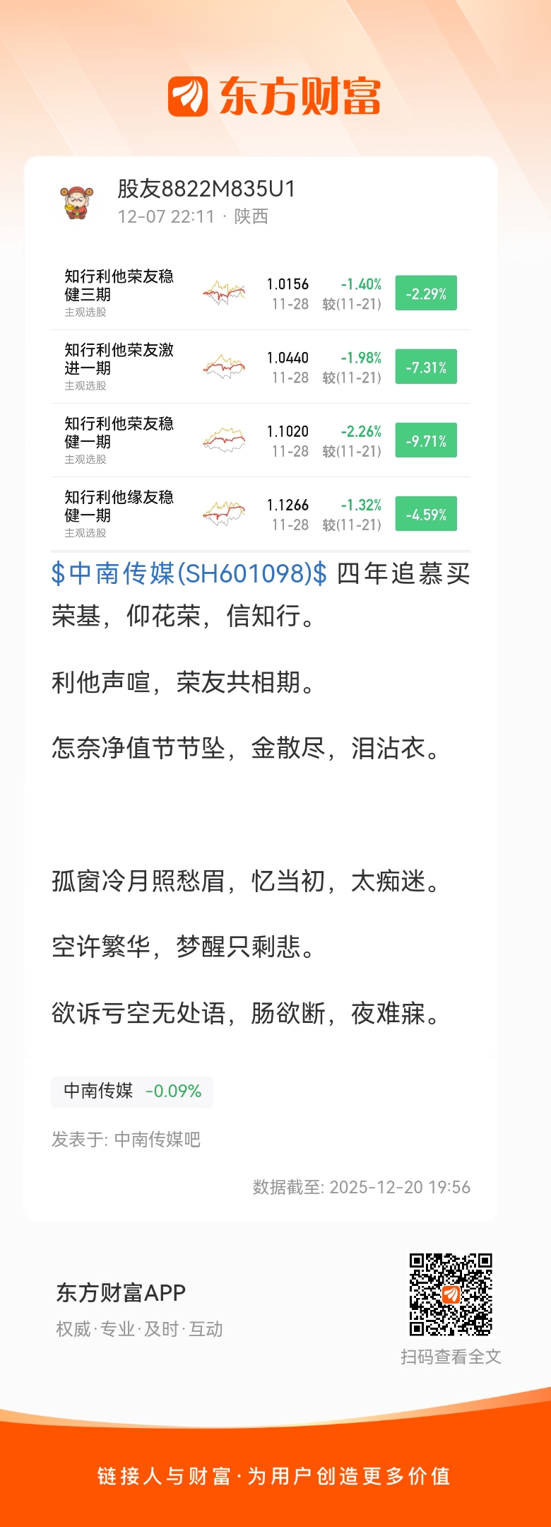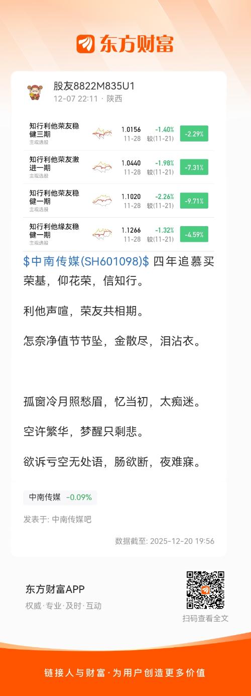 $中南传媒(SH601098)$ 四年追慕买荣基,仰花荣,信知行。