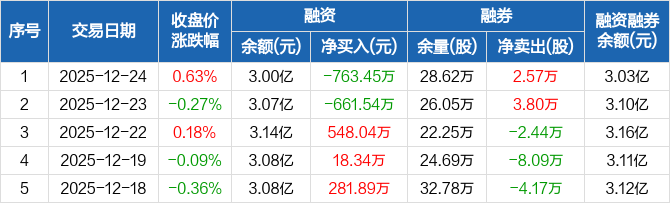中南传媒:融资净偿还763.45万元,融资余额3亿元(12-24)